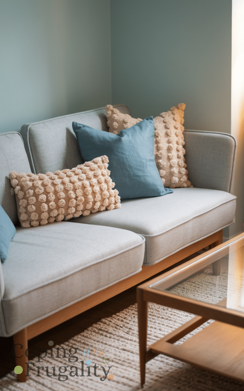 Layering cushions is one of my favorite finishing touches for Cozy Small Living Room Decor because it instantly adds comfort and texture. I enjoy mixing two or three cushion styles in similar tones so the sofa looks inviting without appearing crowded. Soft fabrics like cotton or velvet create warmth naturally. Cushions also help define the seating area and make the living room feel more welcoming. This easy detail makes a big difference in everyday comfort and visual softness.