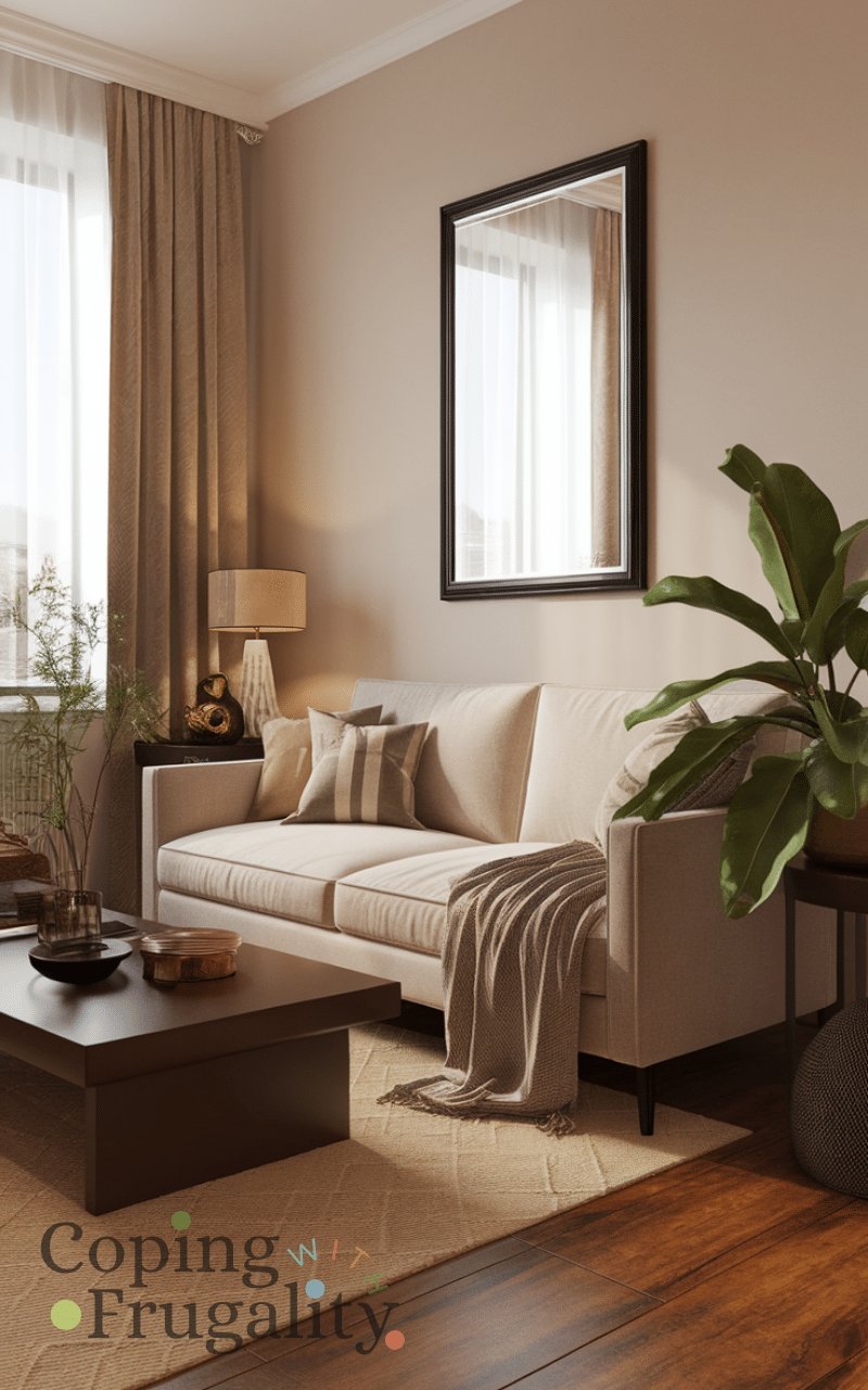Mirrors are one of the smartest tricks for improving Cozy Small Living Room Decor because they reflect natural light and make the room appear larger. I often place mirrors opposite windows or behind lamps to brighten darker corners instantly. A simple framed mirror adds elegance without taking extra floor space. This small design element helps create openness while keeping the cozy feeling strong. Mirrors also connect different parts of the room visually and improve the overall harmony.
