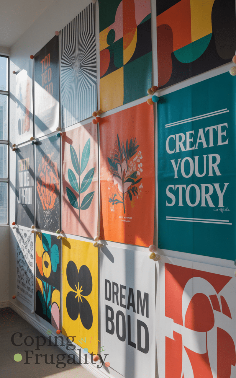Large posters or temporary murals are bold yet budget-friendly. They’re perfect for Wall Decor Without Nails on a Budget when paired with removable adhesive strips. You can cover a large wall area without spending much money. This idea works great for statement walls, dorm rooms, or creative studios. When you’re ready for a change, removal is quick and stress-free.