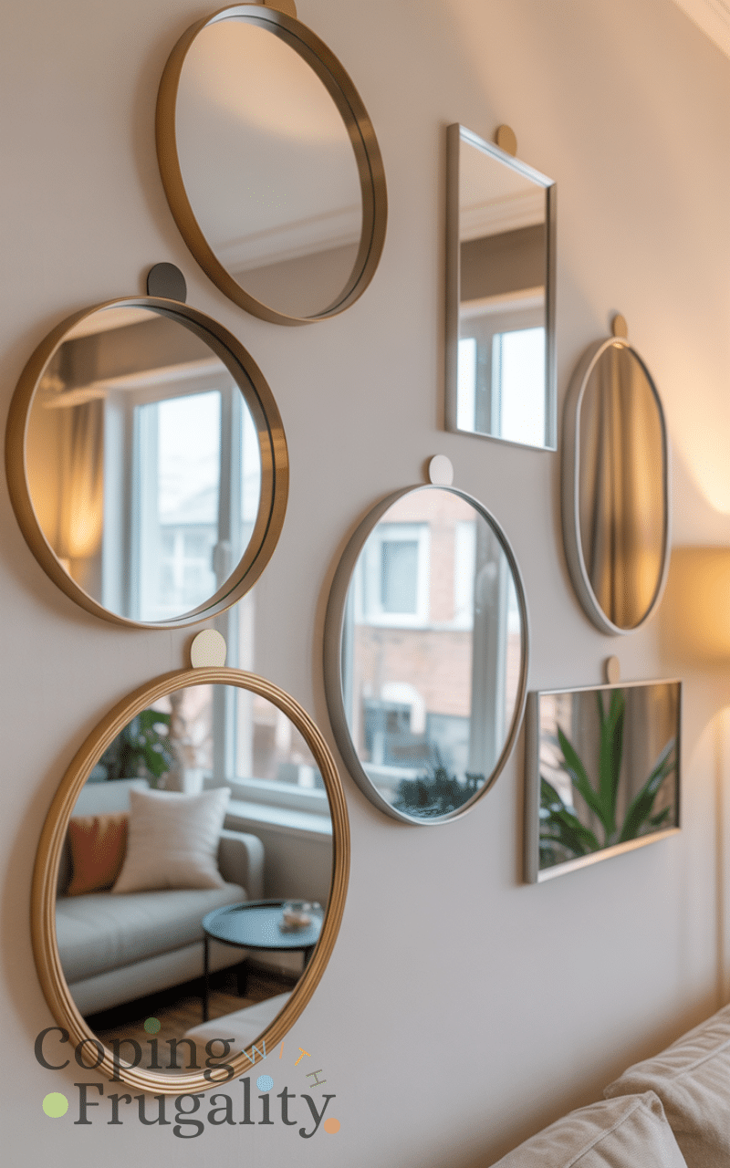 Lightweight mirrors can add depth and brightness to a room without drilling holes. Using removable adhesive hooks fits perfectly into Wall Decor Without Nails on a Budget ideas. Mirrors reflect light and make small spaces feel bigger, which is great for apartments. You can hang one statement mirror or group several smaller ones together. This idea combines function and style while staying affordable and wall-safe.