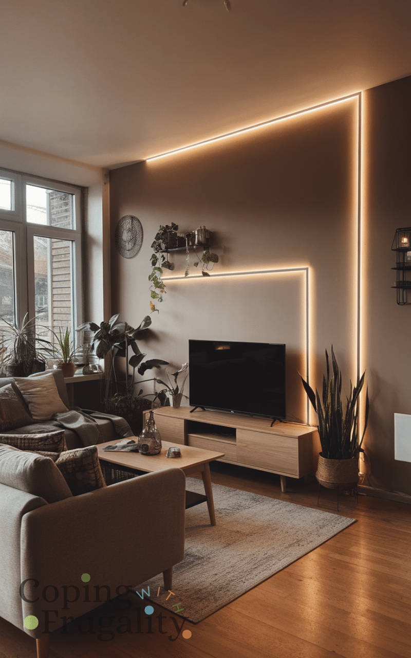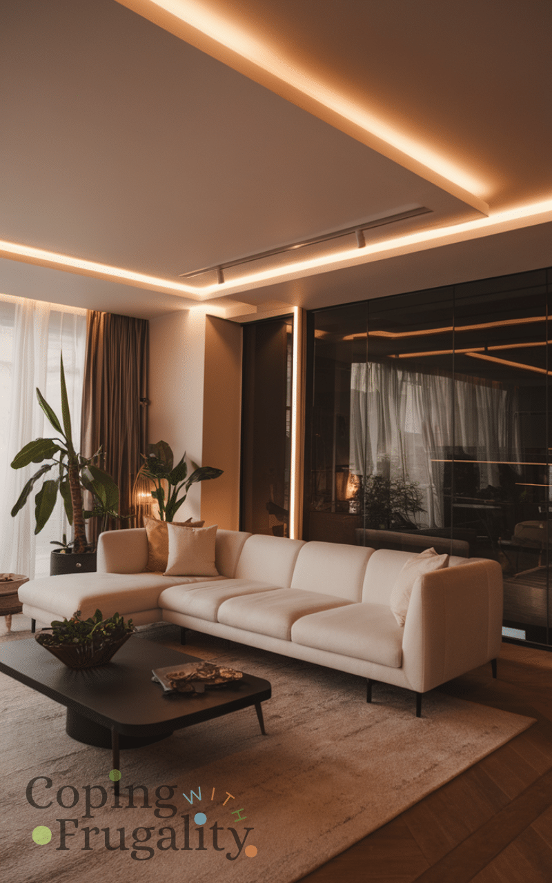 LED strip lights are a simple and versatile way to incorporate Warm Lighting Home Ideas in any room. Placing them behind your sofa, bed, or TV creates a subtle glow that highlights furniture while adding a sense of warmth. I prefer warm-toned LEDs because they give off a soft, inviting light without being too bright or harsh. They’re also easy to install, energy-efficient, and perfect for creating mood lighting for movie nights or relaxing evenings. This trick can instantly elevate the cozy factor in your living room or bedroom without taking up extra space.