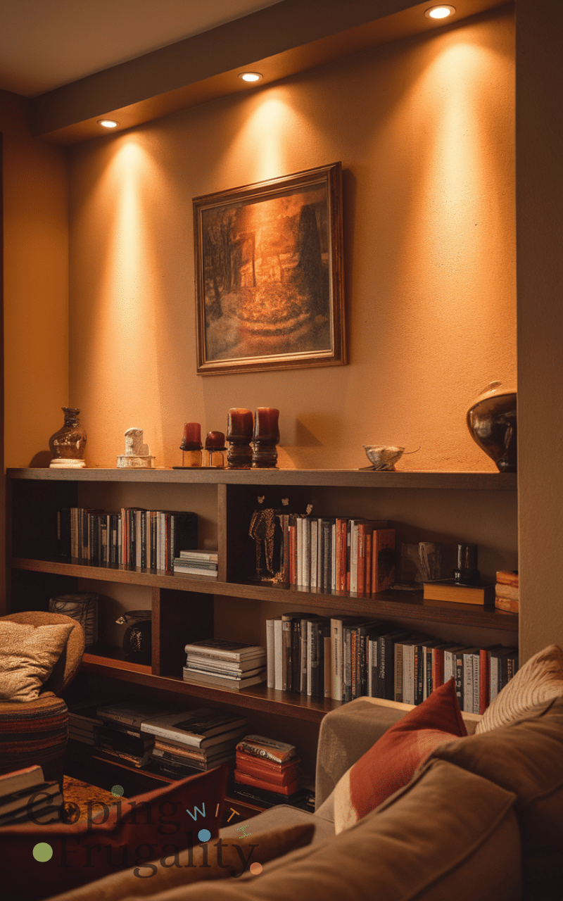 Accent lighting is a stylish way to highlight décor while practicing Warm Lighting Home Ideas. I install small, warm-toned spotlights or LED strips to draw attention to artwork, bookshelves, or decorative pieces. This creates visual interest while adding subtle warmth to the space. Accent lighting also provides indirect illumination, softening the overall ambiance without overwhelming the room. It’s a simple trick to make living areas feel curated and cozy, emphasizing your personal style while ensuring your home remains bright, inviting, and comfortable for everyday living.