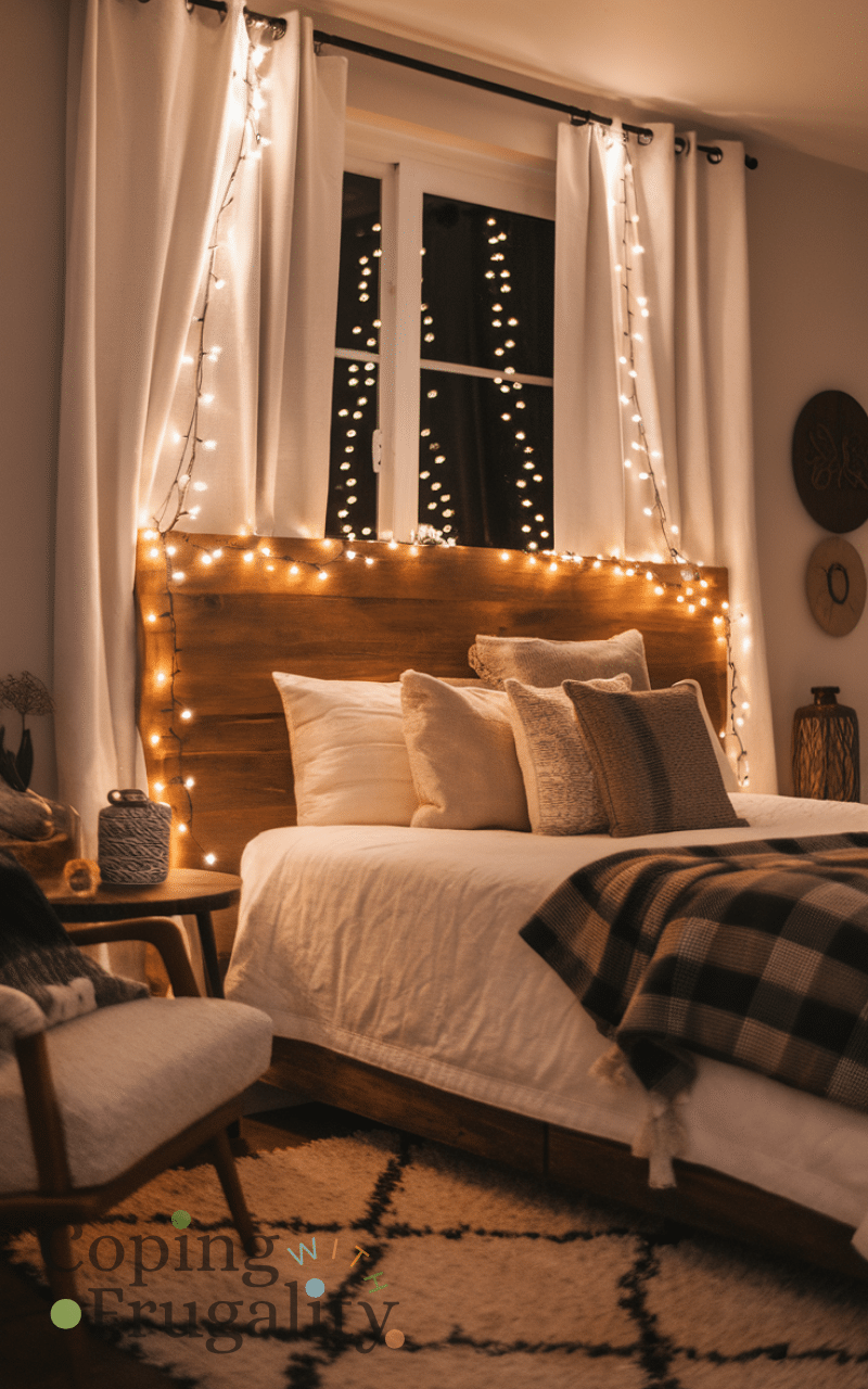 String lights aren’t just for holidays—they’re an adorable addition to Warm Lighting Home Ideas year-round. Draping them around a headboard, window frame, or mantel creates a gentle, twinkling glow that feels magical and cozy. I like using warm white lights for a soft, flattering tone that makes bedrooms or living areas feel intimate and inviting. They’re budget-friendly, easy to hang, and bring a playful, whimsical charm to any space. String lights are perfect for creating a relaxed and cozy mood during evenings, making your home feel lived-in and wonderfully warm.