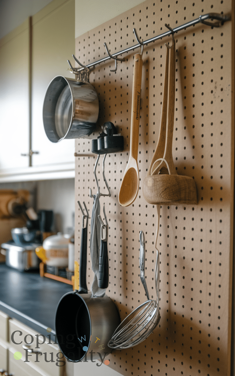 Pegboards are a fun and practical Mini Kitchen Storage solution that keeps tools visible and accessible. I enjoy arranging hooks and holders to match daily cooking habits. This Mini Kitchen Storage method works especially well for cutting boards, spoons, and small pans. It creates flexibility because items can be moved anytime. Pegboards also turn empty walls into active storage zones that support daily kitchen tasks.
