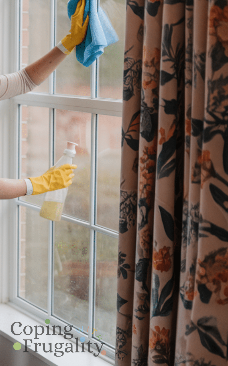 A vinegar and water spray works perfectly as a glass cleaner and is a staple in natural cleaning recipes for every room on a budget. It removes fingerprints and streaks from mirrors and windows. Wiping with a microfiber cloth leaves glass surfaces clear and shiny. This solution is affordable, easy to make, and far more economical than commercial glass sprays.