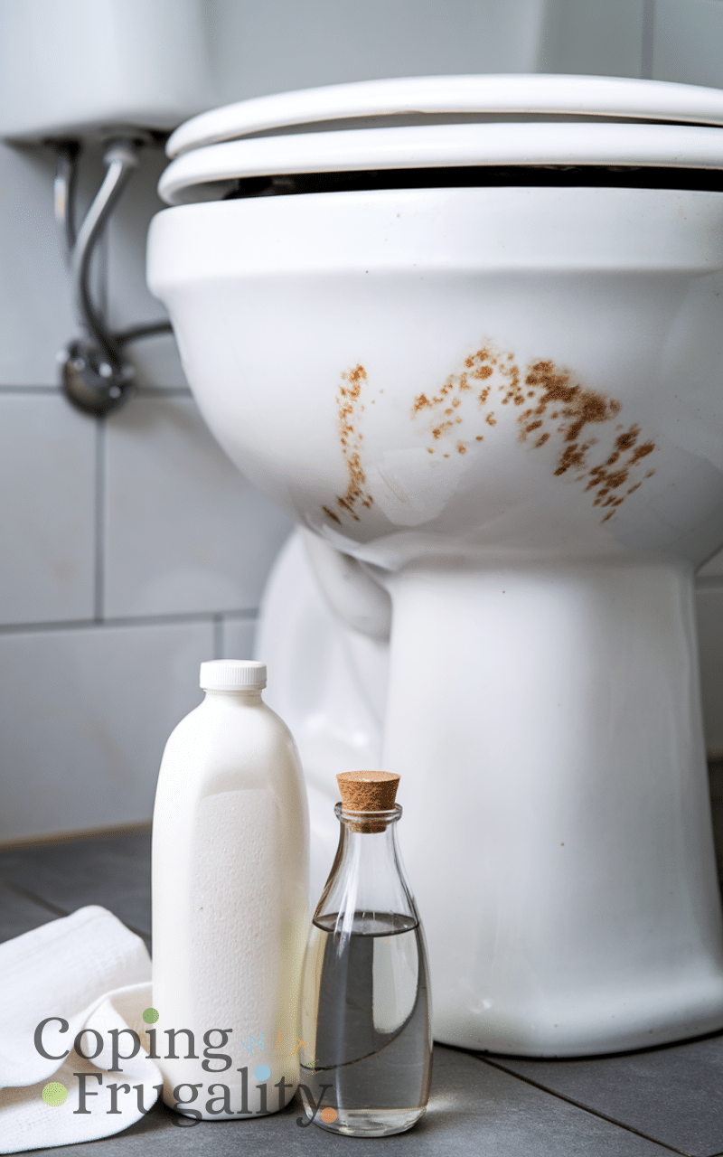 Baking soda and vinegar also work well as a toilet cleaner. This combination is one of the most effective natural cleaning recipes for every room on a budget. Let it fizz in the bowl, scrub lightly, and flush. It cleans stains and deodorizes naturally while avoiding harsh toilet chemicals.