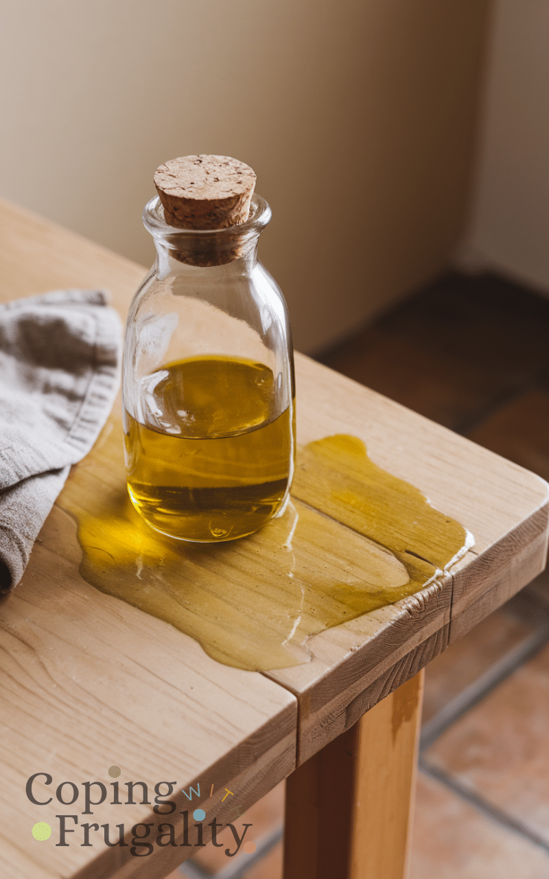 A mixture of olive oil and vinegar works as a natural wood polish and is an excellent example of natural cleaning recipes for every room on a budget. It removes dust, restores shine, and conditions wood surfaces gently. This affordable recipe replaces expensive furniture sprays and keeps wooden furniture looking clean and nourished.