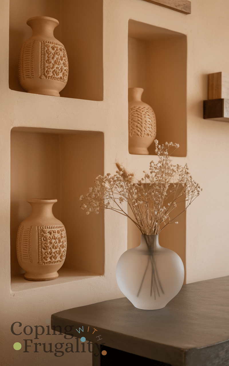Decorative vases are a simple upgrade for Warm Beige Home Decor on a Budget. Beige ceramic or frosted glass vases look elegant and timeless. Place them on shelves, tables, or countertops with dried flowers or branches. These pieces add softness and warmth without needing frequent updates, making them a smart and affordable decor choice.
