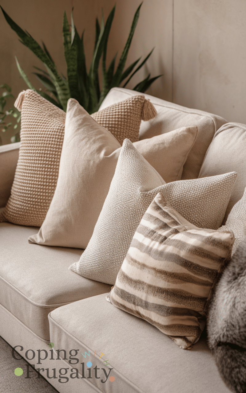 Adding throw pillows is one of the easiest ways to achieve Warm Beige Home Decor on a Budget. Choose beige pillows in different textures like linen, knit, or faux fur to add depth without spending much. Mixing textures keeps the look interesting while maintaining a calm, neutral palette. You can easily find affordable pillow covers online or in discount stores, and even swap them seasonally. This small change instantly makes sofas and beds feel cozier and more intentional.