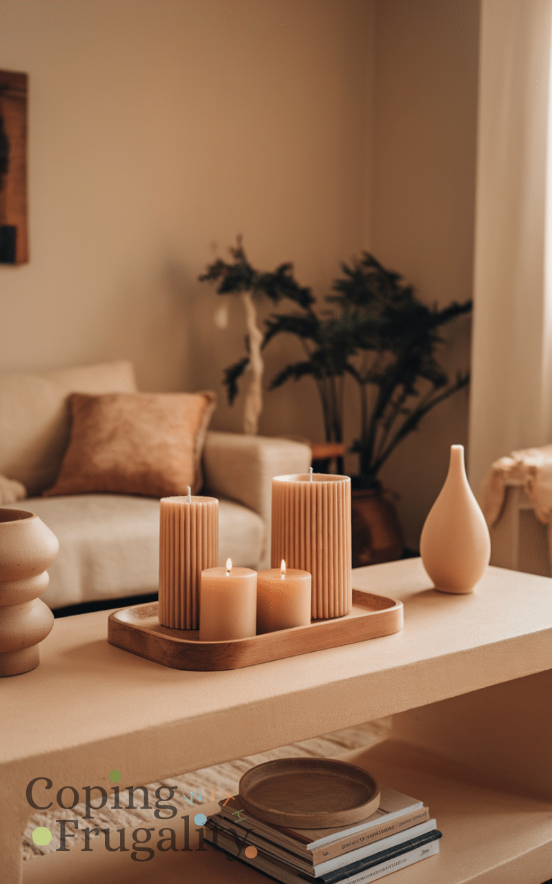 Candles add instant warmth, making them perfect for Warm Beige Home Decor on a Budget. Beige candles or holders create a calm, cozy vibe. Group them on trays or shelves for a simple yet elegant look. Even unscented candles can enhance the atmosphere beautifully.