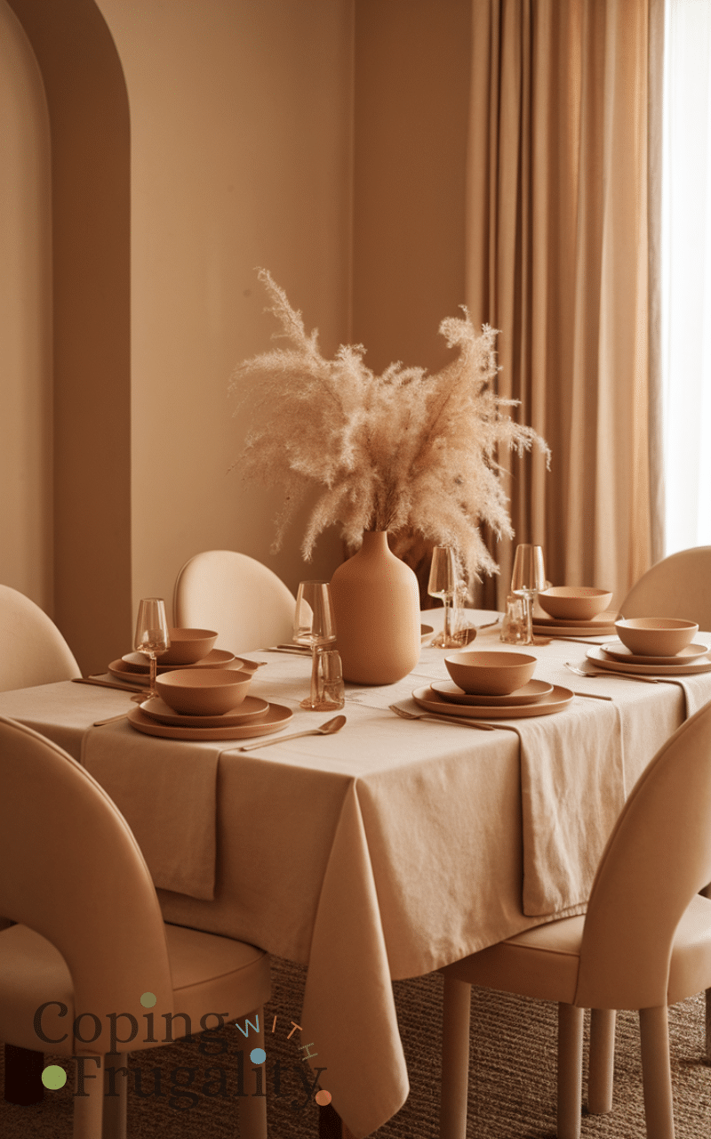 Dining spaces benefit greatly from Warm Beige Home Decor on a Budget through simple table linens. Beige tablecloths or runners instantly make meals feel more inviting. They work for everyday use and special occasions alike. Linen-look fabrics are affordable and elevate your dining area effortlessly.