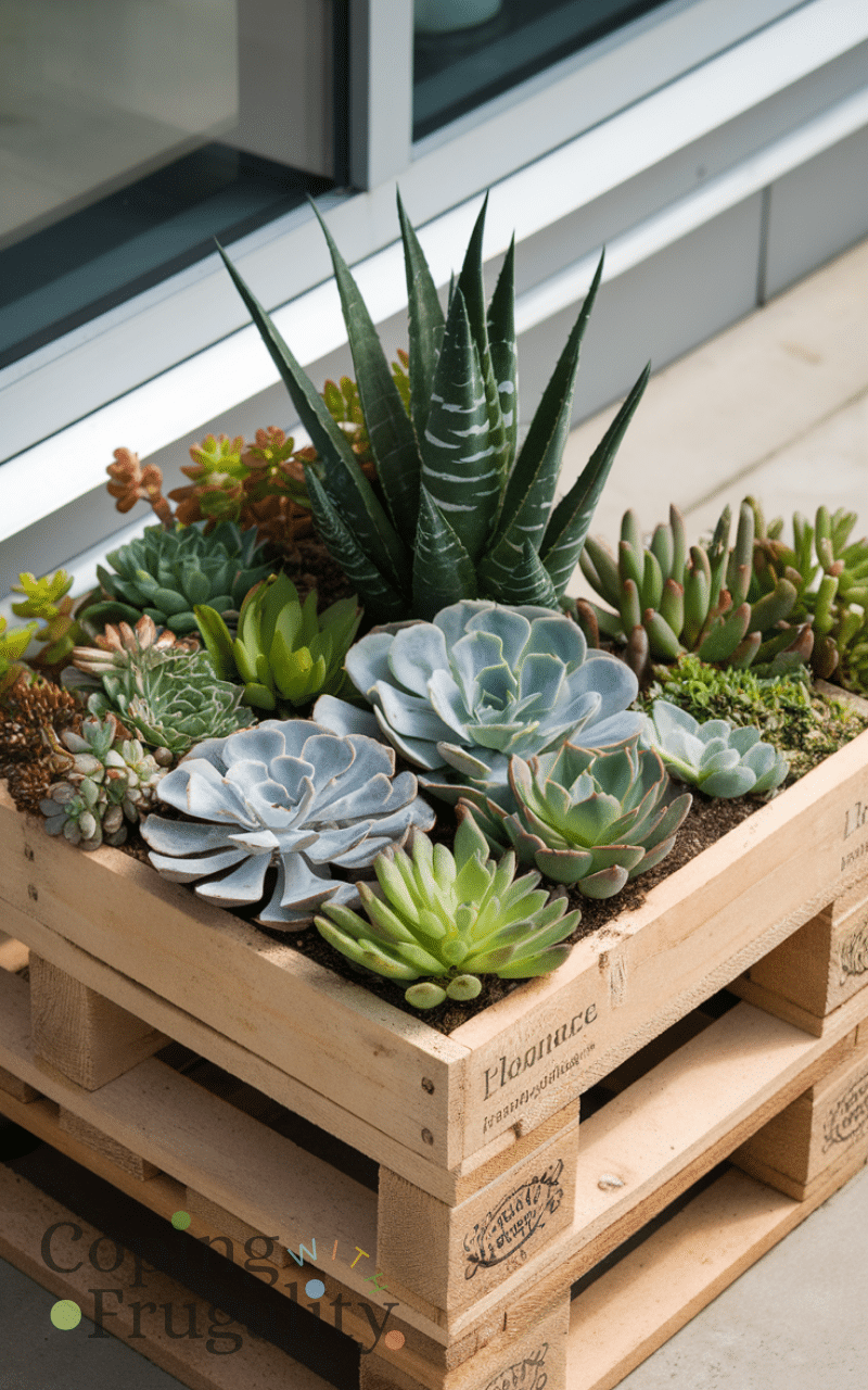 Succulent displays are elegant Best Wood Pallet Planters that create a modern decorative touch in gardens and balconies. I enjoy using this design because succulents require little watering and look beautiful arranged in rows or patterns. The wooden pallet background highlights their colors and textures perfectly. This planter style is ideal for sunny spots where drought-friendly plants thrive. It also works well indoors near windows with good light. With minimal maintenance and stylish results, this planter option is perfect for anyone who wants beauty without too much effort.