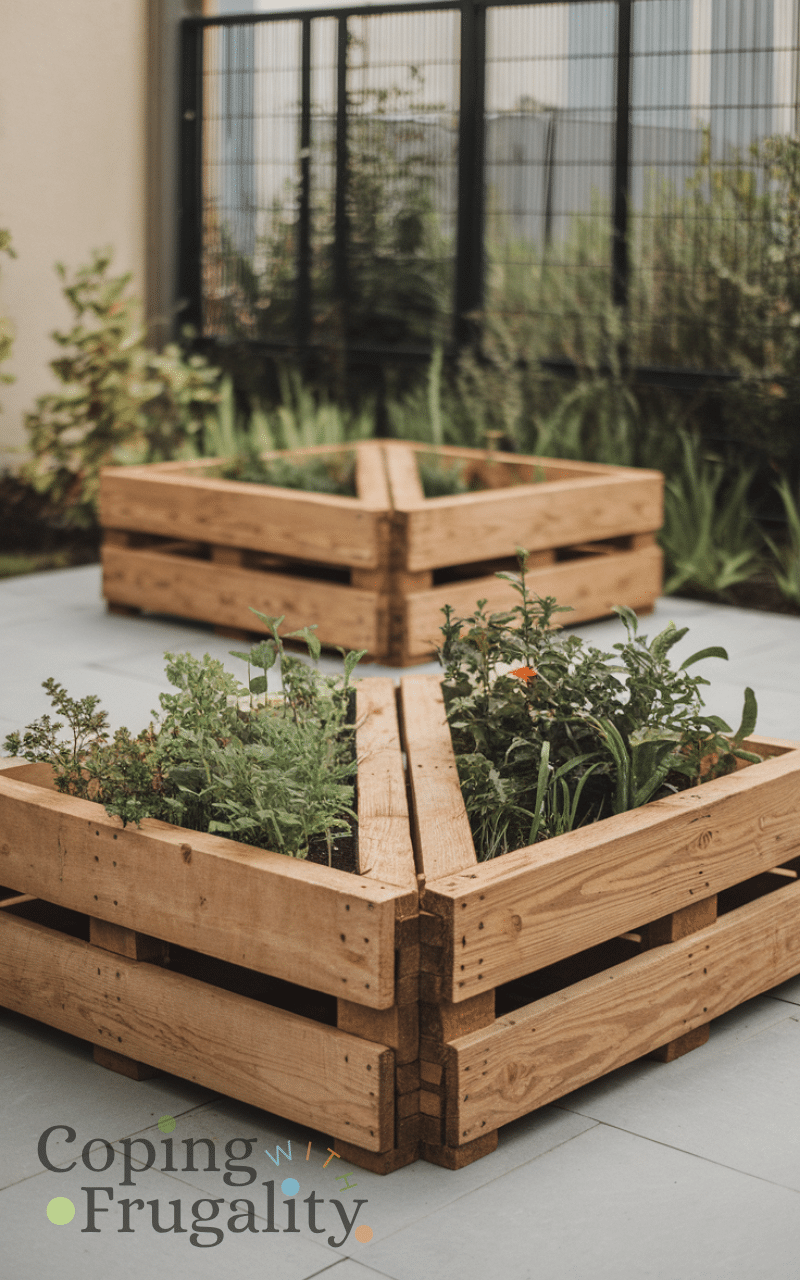 Corner designs are smart Best Wood Pallet Planters that make use of spaces I normally ignore. I like placing them in patio corners or balcony edges where regular planters do not fit well. They help maximize every inch of available space while still looking stylish and intentional. Corner pallet boxes are perfect for flowers, herbs, or small shrubs. With a simple triangular shape and sturdy base, they add balance and structure to outdoor layouts. This planter idea is perfect when you want practical storage for plants without crowding your garden.