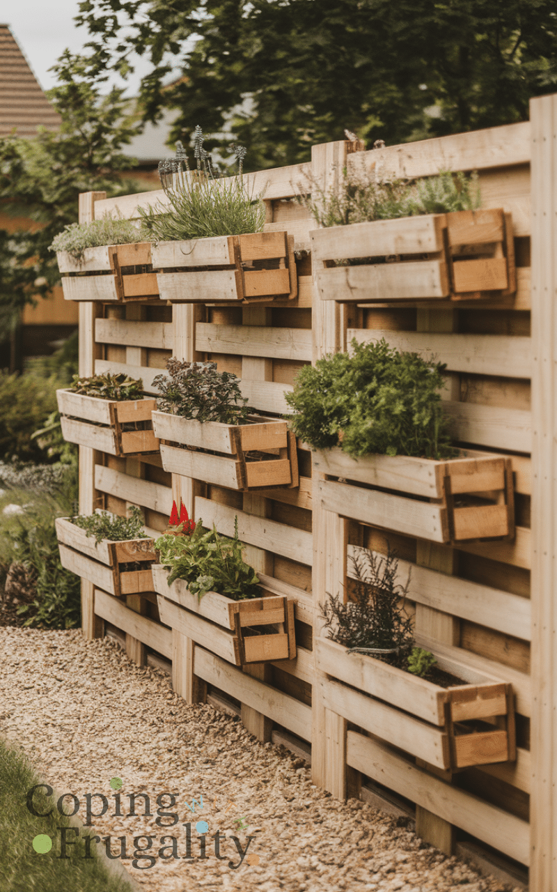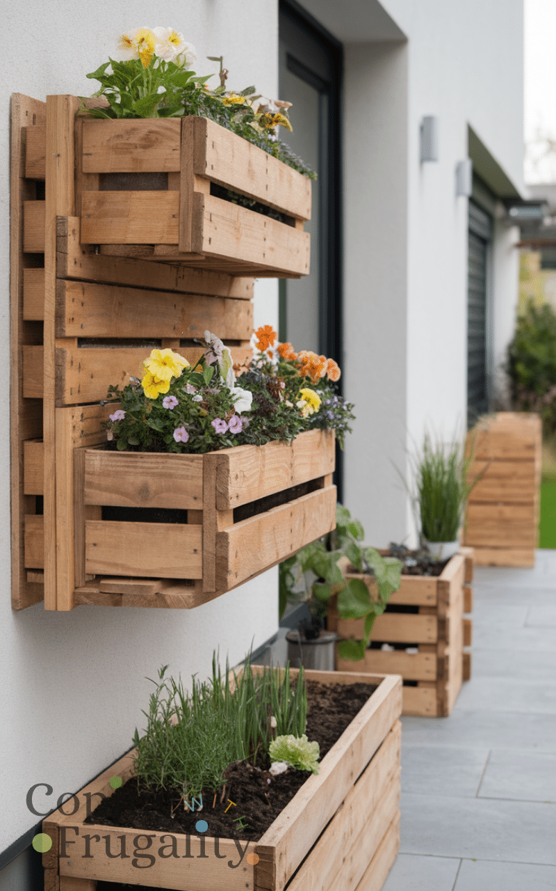 Fence-mounted designs are space-saving Best Wood Pallet Planters that help turn empty boundaries into green walls. I enjoy attaching these planters along fences to create a natural privacy effect with flowers or herbs. They also help organize plants vertically without taking ground space. This planter idea works especially well in narrow gardens or small patios. With secure mounting and proper spacing, plants grow neatly while enhancing the overall garden atmosphere. Fence planters are simple to install and instantly make outdoor spaces feel fuller and more welcoming.