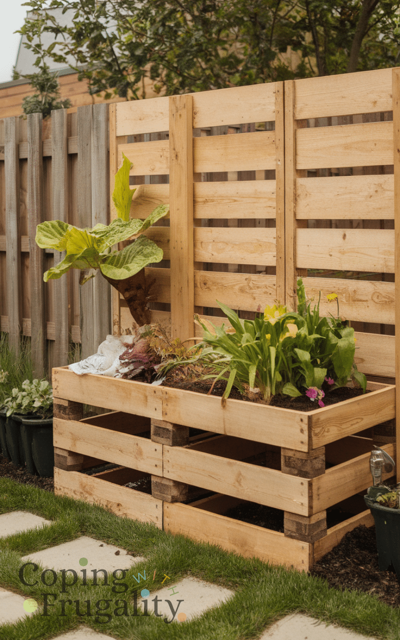 A compost combination design is a functional Best Wood Pallet Planters solution that supports sustainable gardening habits. I like this setup because it allows organic waste to turn into nutrient-rich soil near planting areas. It helps improve plant growth naturally without extra fertilizers. The pallet structure keeps compost contained while maintaining airflow for decomposition. This planter idea works well in medium or large gardens where space allows composting areas. With smart placement and simple construction, it becomes a practical addition to any eco-friendly gardening routine.