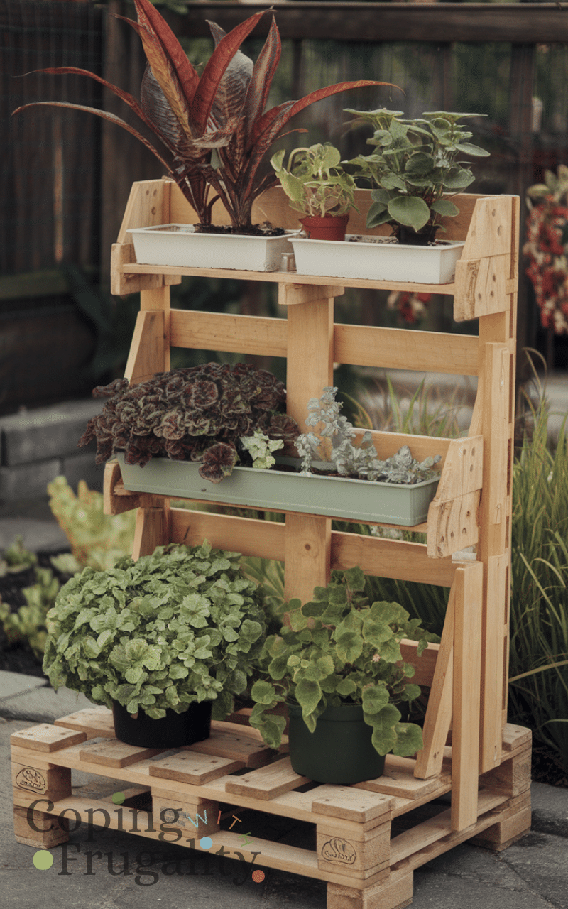A freestanding shelf is one of the most flexible Best Wood Pallet Planters I like building because it can be moved easily when needed. I usually place different plants on each level depending on sunlight requirements. This structure keeps everything organized while creating a layered garden display. It also works well for mixing flowers with herbs in one compact area. The shelf design adds both storage and decoration to outdoor spaces. With simple adjustments and creative plant placement, it quickly becomes one of the most useful pallet garden solutions.