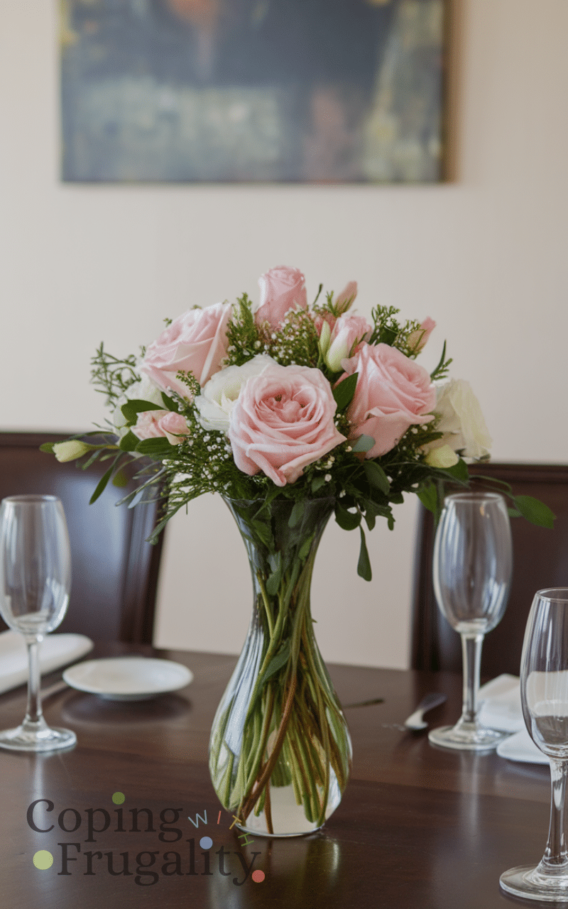 A single centerpiece on a dining table or console, like a vase with fresh flowers or a decorative bowl, is enough to complete the look. This reinforces the concept of decorating with fewer items on a budget by focusing on one statement element rather than filling the space with multiple objects.