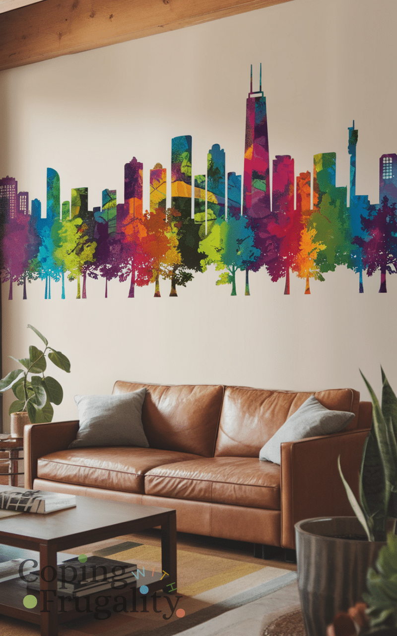 Instead of filling walls with frames or shelves, try a large wall decal or sticker. It’s an affordable way to decorate with fewer items on a budget while adding personality to your room. Decals are easy to apply and remove, giving you a decorative solution that doesn’t require extra furniture or accessories.