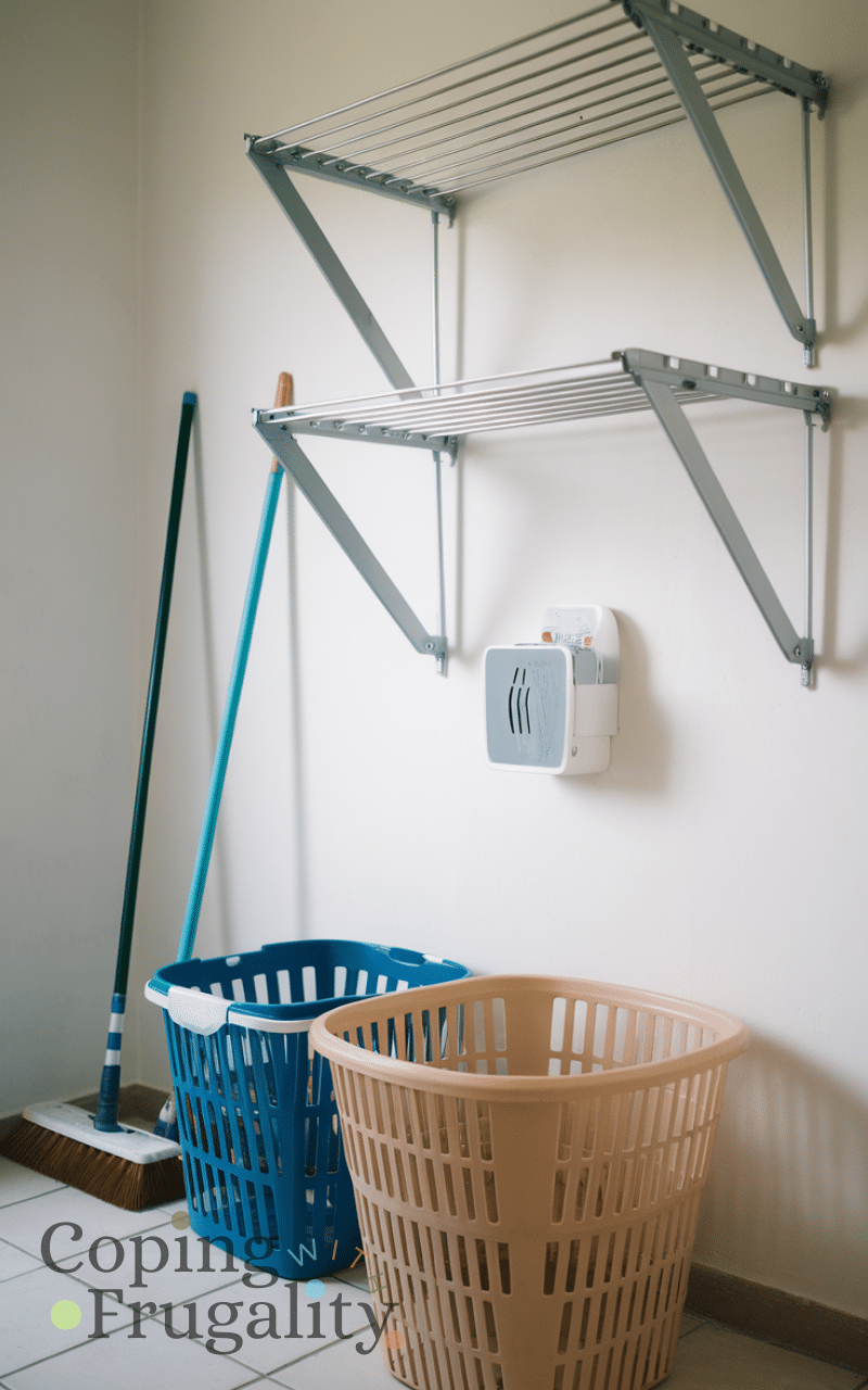 Wall-mounted drying racks are ideal for small homes that lack a dedicated drying space. These racks fold against the wall when not in use, freeing up valuable floor space. They’re perfect for air-drying delicates or small loads without needing a bulky drying stand. For laundry room storage in small homes on a budget, wall-mounted racks also provide a dual function as an organizational tool, keeping items off counters and floors. They are easy to install and can support multiple items at once, making them an efficient, practical addition to your laundry area.