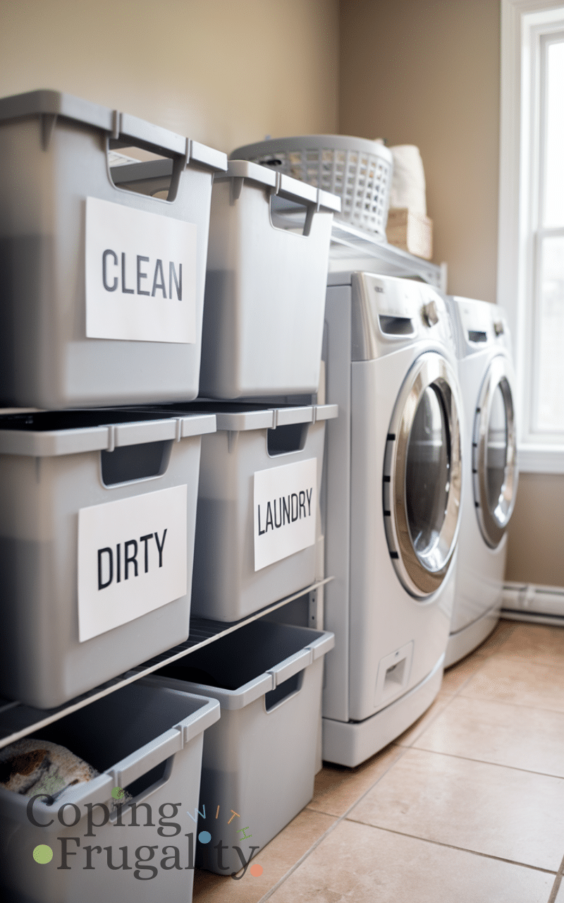 Stackable bins are a clever way to keep laundry supplies neat and compact. These bins can hold cleaning products, laundry pods, or even kids’ items and can be stacked to save precious floor space. In small homes on a budget, using stackable bins allows you to customize storage according to your room size. Clear bins make it easy to see what’s inside, while labeled options help maintain order. You can place them on shelves, in cabinets, or beside your washer and dryer. Stackable bins are a flexible, cost-effective solution for any laundry room storage in small homes.
