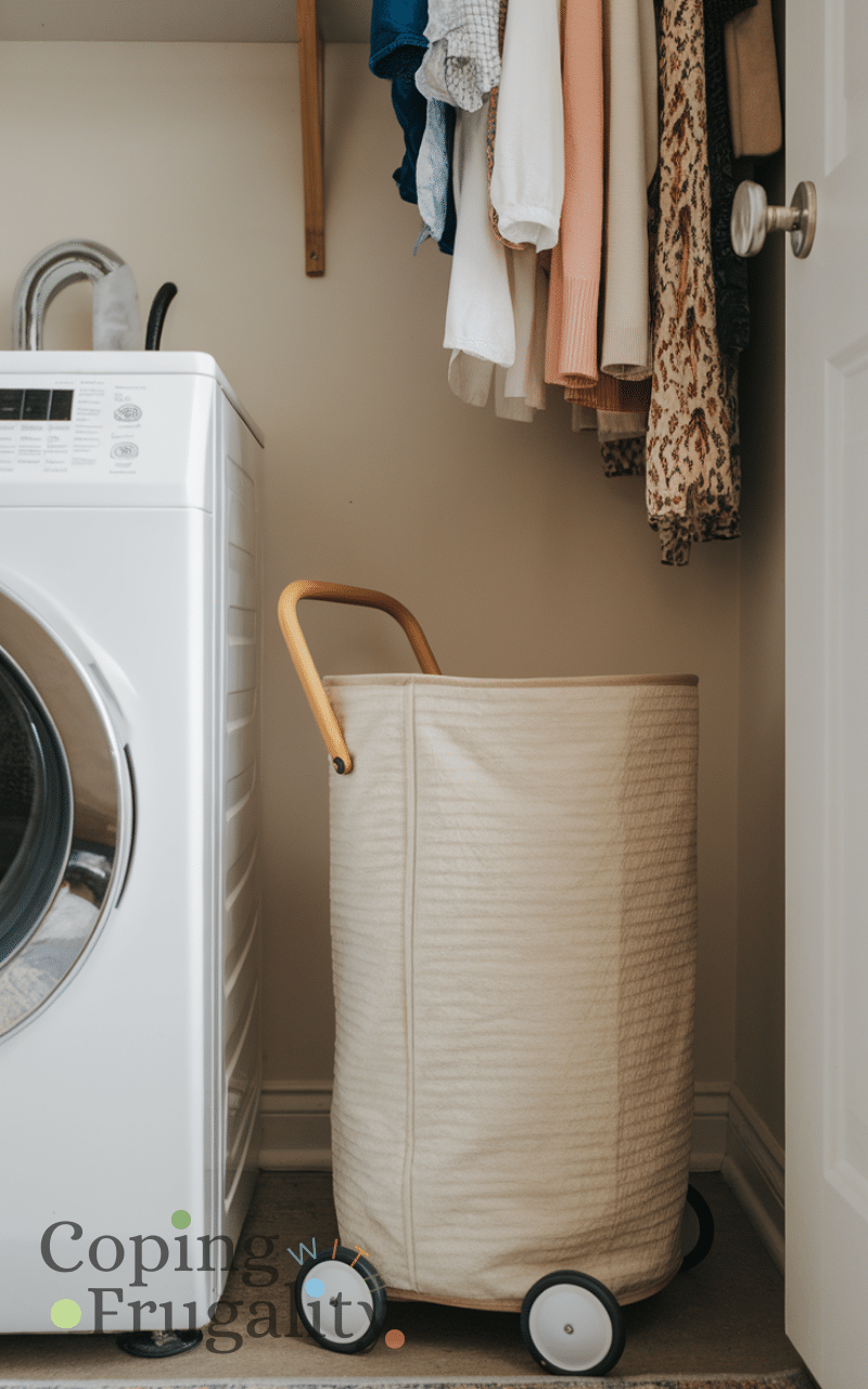 Slim rolling hampers are perfect for small laundry rooms, offering mobile storage without taking up much space. You can roll them between rooms or tuck them into corners when not in use. In small homes on a budget, these hampers help organize dirty laundry efficiently while keeping the area neat. Many models have multiple compartments for sorting whites, colors, and delicates. Their compact size and mobility make them a smart, practical addition to any laundry room storage setup in small homes.