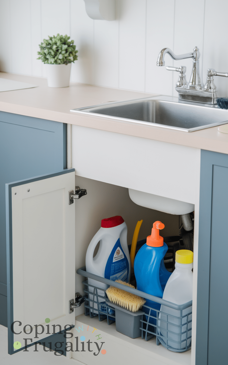 If your laundry room has a sink, under-sink storage is a hidden gem. Adding a small cabinet, basket, or shelf under the sink creates a convenient spot for detergents, brushes, and cleaning supplies. In small homes on a budget, this space is often underutilized, making it perfect for discreet storage. Organizing under the sink reduces countertop clutter and keeps essentials within easy reach. With a few inexpensive containers or racks, under-sink storage can dramatically improve your laundry room storage in small homes while staying stylish and functional.
