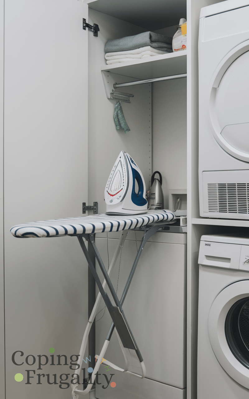 Fold-down ironing boards save both space and money. These boards attach to the wall and fold up when not in use, freeing up floor space in small laundry rooms. In small homes on a budget, this solution is perfect for maintaining a clean, organized laundry area without sacrificing function. Many fold-down boards include storage shelves or compartments for ironing supplies, combining two purposes in one. Installing a fold-down ironing board is simple and adds practical value, making it a smart investment for maximizing laundry room storage in small homes.