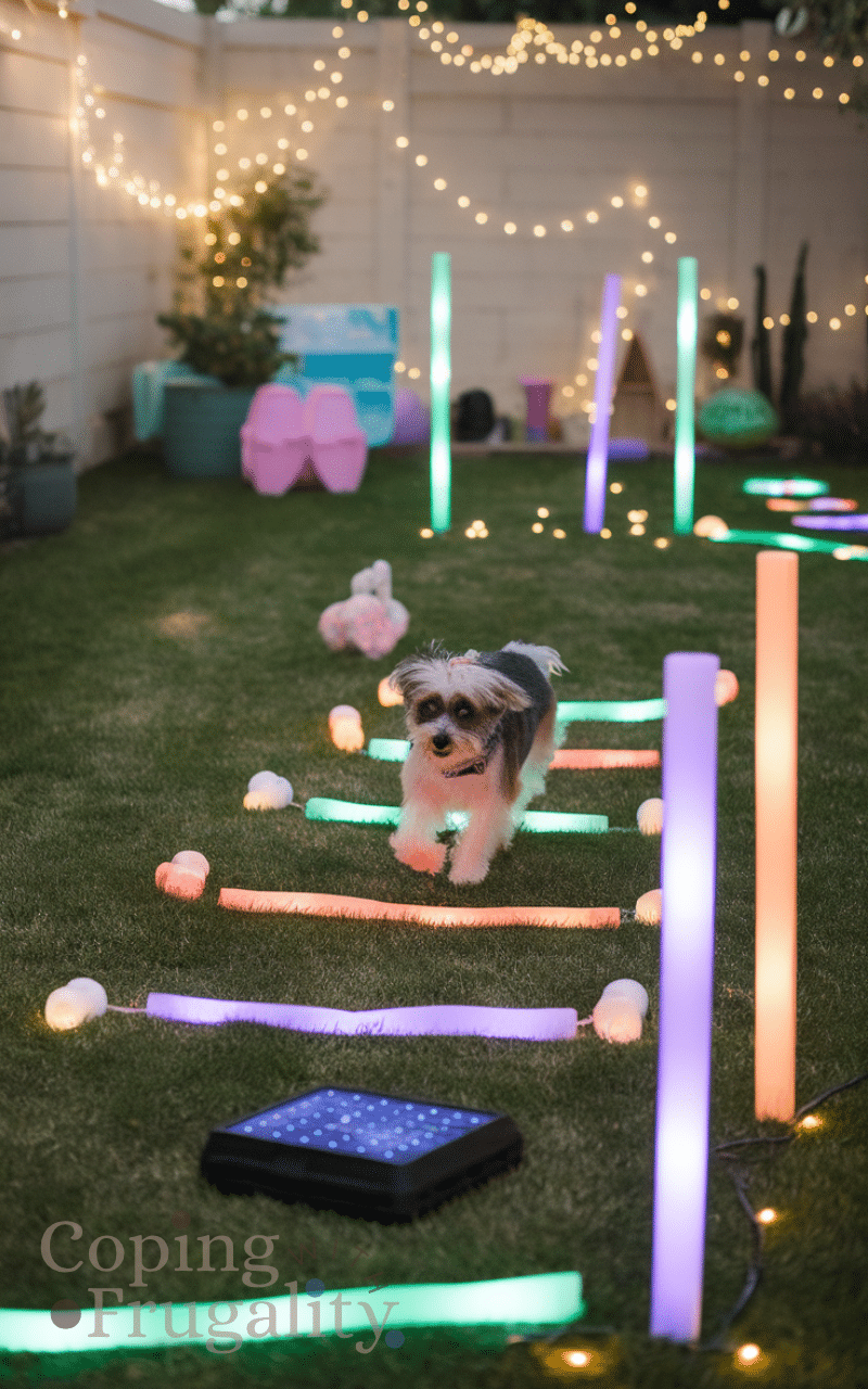 Use glow sticks or solar lights to create an evening play zone and pets can enjoy twilight games safely and by adding toys and gentle lighting you extend playtime and pets love exploring the illuminated backyard making backyard pet play ideas on a budget for happy animals magical and memorable.