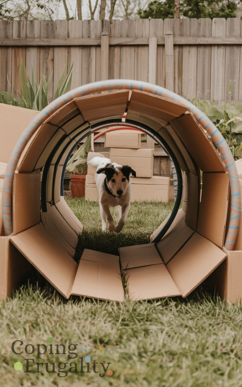 Use cardboard boxes or PVC pipes to create tunnels and pets will have fun running and crawling through them and this playful tunnel exercise boosts coordination and confidence and pets enjoy the thrill of exploring new paths and by setting this up you improve backyard pet play ideas on a budget for happy animals while keeping them entertained.