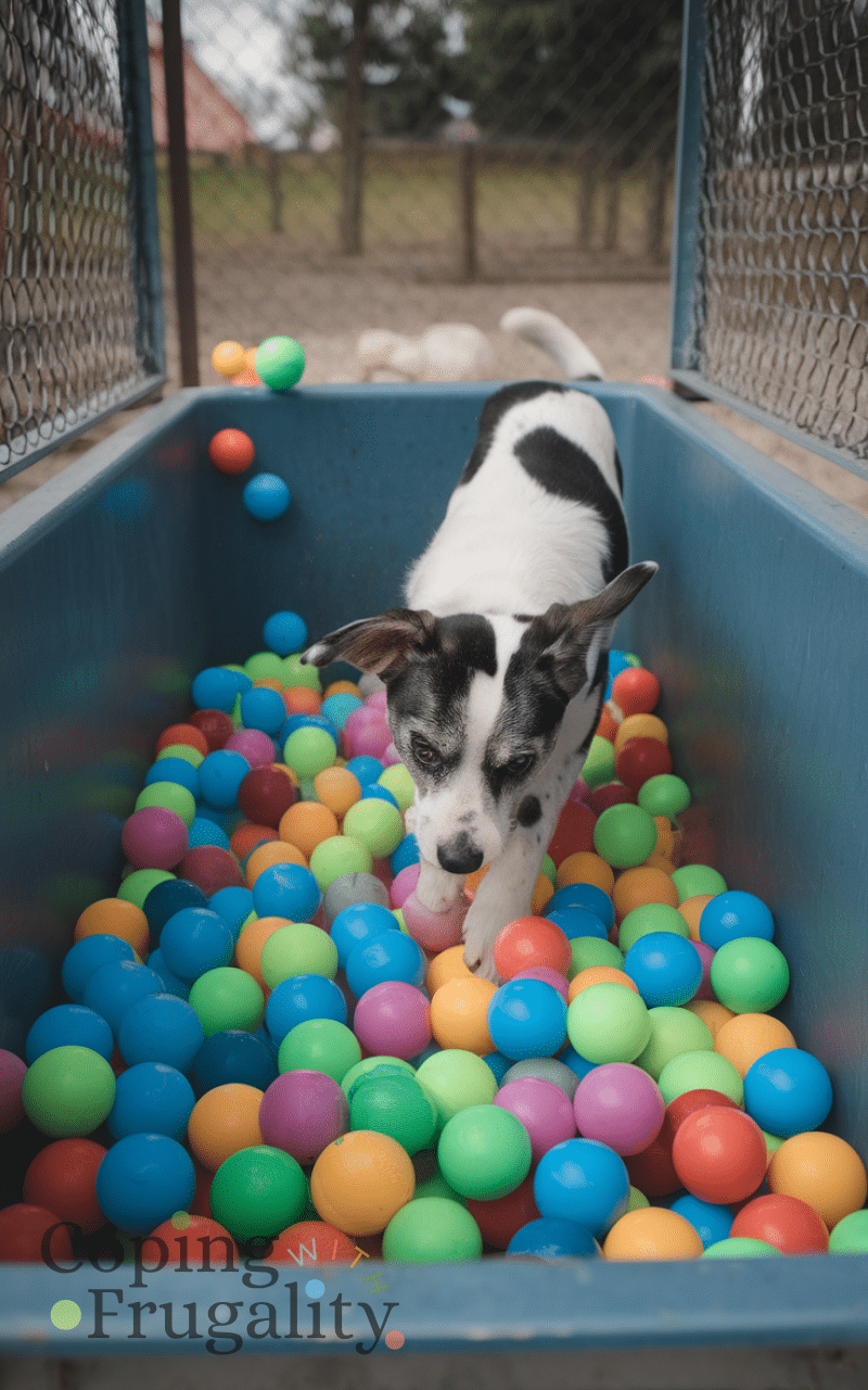 Fill a small container with plastic balls or soft toys and pets can jump and roll in them and by providing this fun sensory experience you boost exercise and curiosity and pets will enjoy digging and playing daily making backyard pet play ideas on a budget for happy animals colorful and joyful.