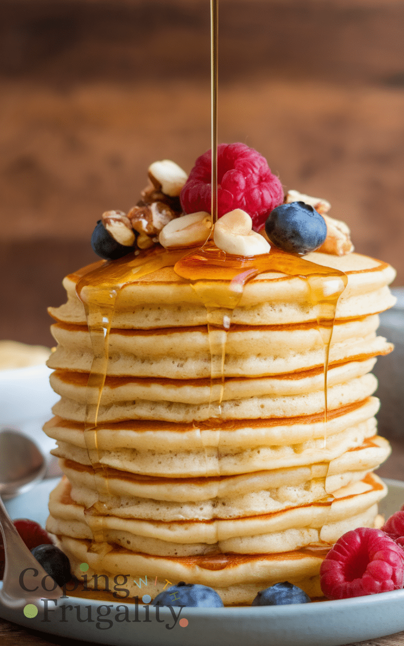 Pancakes with honey are a classic breakfast idea on a budget that taste delicious because you can make the batter with simple ingredients like flour milk eggs and a little sugar and once you cook them you can drizzle honey on top instead of expensive syrups and they taste sweet soft and warm and you can also add some fruits or nuts if you like and it is a meal that everyone loves and it makes your morning feel cozy and special without spending too much.