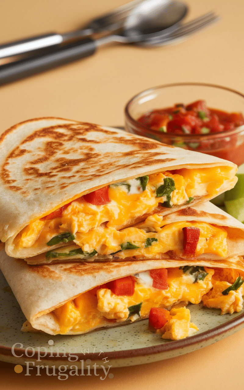 A breakfast quesadilla is a fun and satisfying breakfast idea on a budget that taste delicious because you can fill a tortilla with scrambled eggs cheese and vegetables and cook it until golden and crispy and it gives you a warm and cheesy bite that feels like a treat even though it is made from simple ingredients and it is perfect for both kids and adults who want something tasty and budget friendly.
