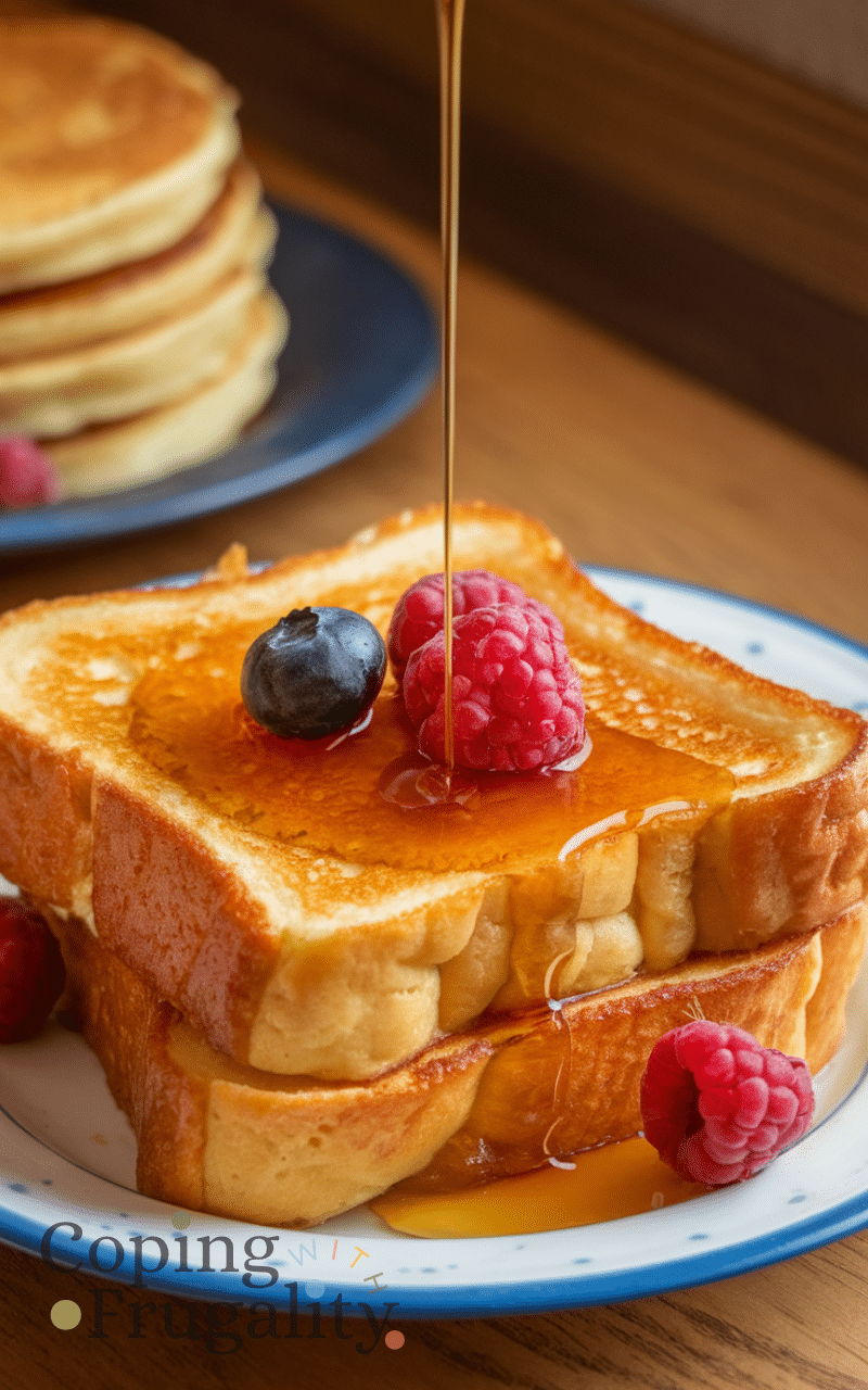 French toast is one of those breakfast ideas on a budget that taste delicious because you only need bread eggs milk and a touch of cinnamon and it turns old bread into a sweet and soft treat and you can serve it with a bit of honey or fruit on top and it feels fancy even though it is very affordable and easy to make and it is a great option when you want something warm and sweet that makes your morning special.