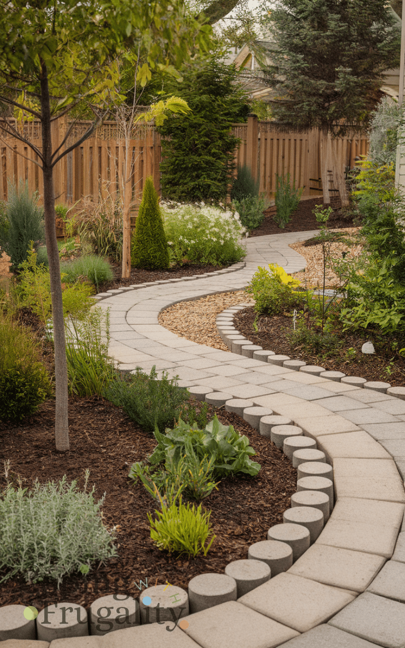 Concrete pavers offer one of the most durable and clean DIY garden edging ideas on a budget that make your garden look modern and neat. You can line them up in a straight or curved pattern depending on your garden shape and you can even paint them in soft tones for extra charm. They define the edges clearly and help prevent soil from spilling onto pathways while giving your yard a tidy organized feel that lasts through all seasons.