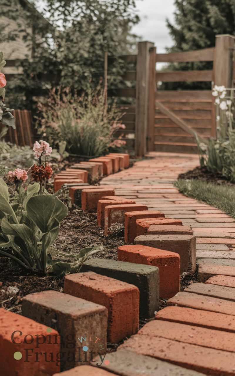 Using old bricks is one of the easiest DIY garden edging ideas on a budget because it adds a rustic charm while keeping costs low. You can collect leftover bricks from construction sites or neighbors who no longer need them and arrange them in a simple line or a slightly tilted pattern for a unique effect. The warm earthy tones of the bricks give your garden a cozy timeless look while also helping to separate flower beds from pathways so everything feels organized and welcoming.