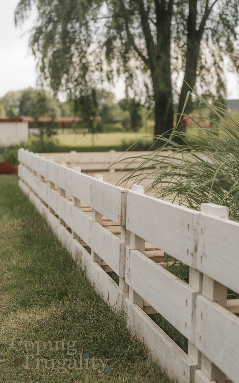 Wood pallets are one of the easiest materials to find for free and they are great for DIY garden edging ideas on a budget. You can cut the boards into short sections and arrange them vertically or horizontally depending on your style. Paint or stain them to protect the wood and add a pop of color then enjoy the charming farmhouse look that instantly transforms your garden without spending much.