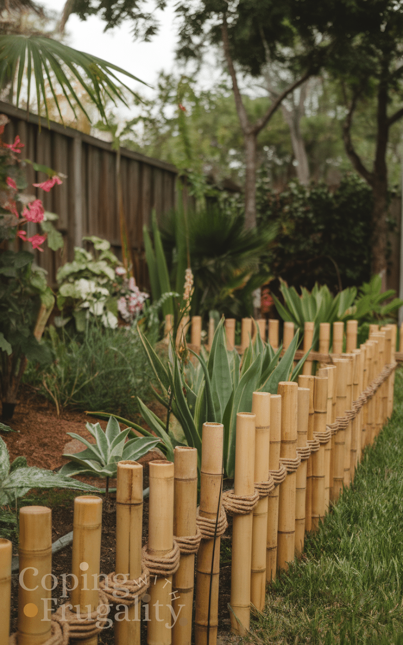 Bamboo sticks are lightweight natural and inexpensive which makes them perfect for DIY garden edging ideas on a budget. You can cut them to equal lengths and tie them together with wire or twine before placing them along your flower beds. Bamboo gives your garden a tropical Zen inspired atmosphere that feels calm and balanced and it is easy to adjust or replace whenever you want to refresh the look.