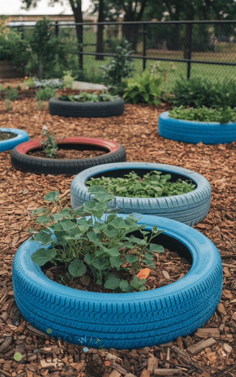 Old tire rims can turn into unexpected beauty when used as DIY garden edging ideas on a budget. You can half bury them in the ground to create circular borders for small garden beds or paint them in fun colors to add playful accents. This idea is a great way to recycle materials that would otherwise go to waste while adding a bold and creative structure that stands out in your yard.