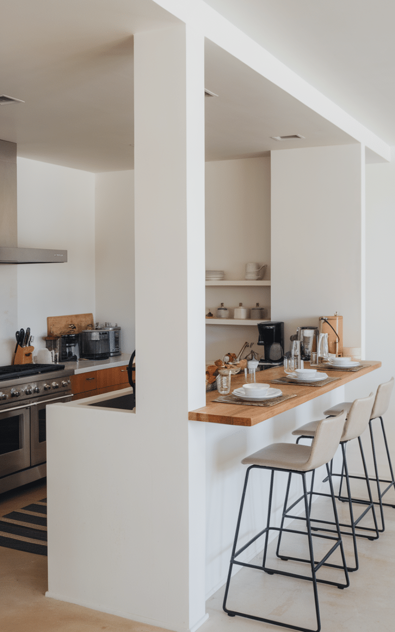 A breakfast bar setup makes mornings easier and faster. I like how this layout creates a casual place for quick meals without needing a full dining table. It works especially well for families who want flexibility during busy weekday routines.