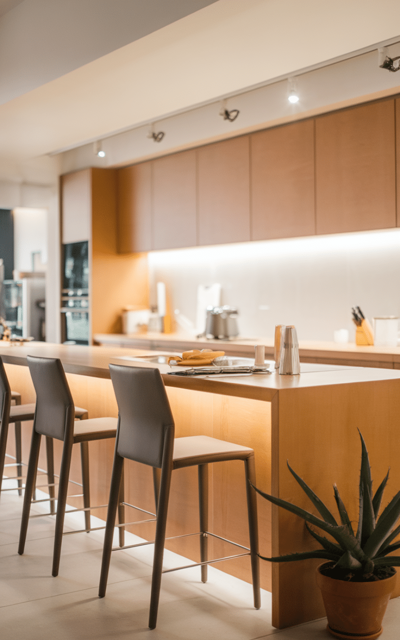 Another detail I found especially helpful was combining seating layouts with cozy finishing touches like pendant lighting and soft ambient layers. Pairing the island with Warm Lighting Ideas for Kitchen creates a relaxed atmosphere that makes the entire room feel more inviting. Small planning decisions like these help the island become both practical and beautiful at the same time.