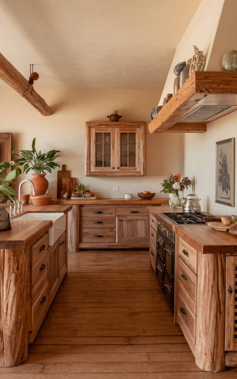 Natural wood finishes bring timeless character into the kitchen. I like how rustic textures create a relaxed environment that feels comfortable every day. This style pairs easily with neutral décor and works well in both traditional and modern homes.