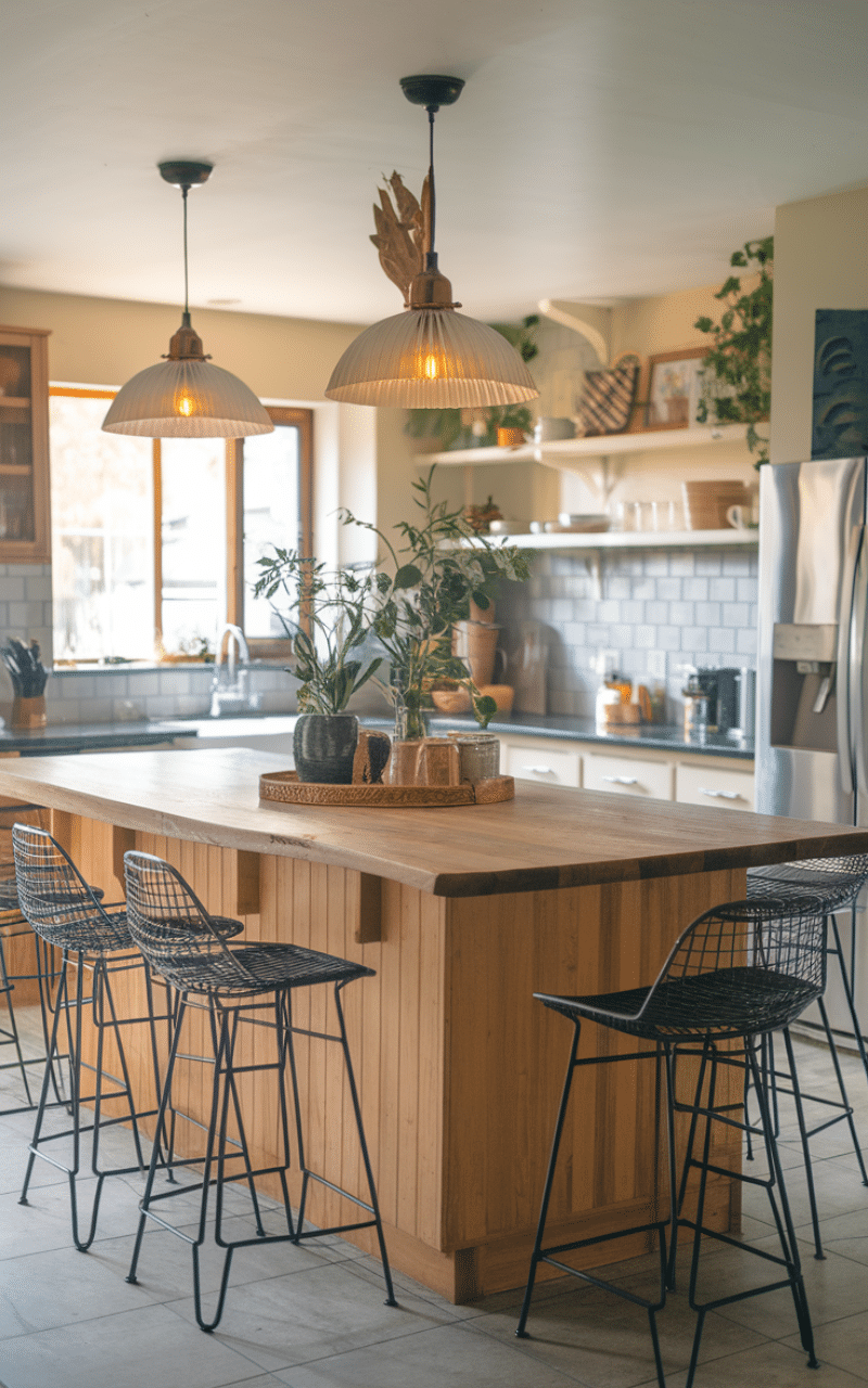 Pendant lights instantly define the seating area as a gathering space. I always notice how the right lighting adds warmth and balance while improving visibility for meals and conversations. Even simple fixtures can transform the island into a cozy focal point.