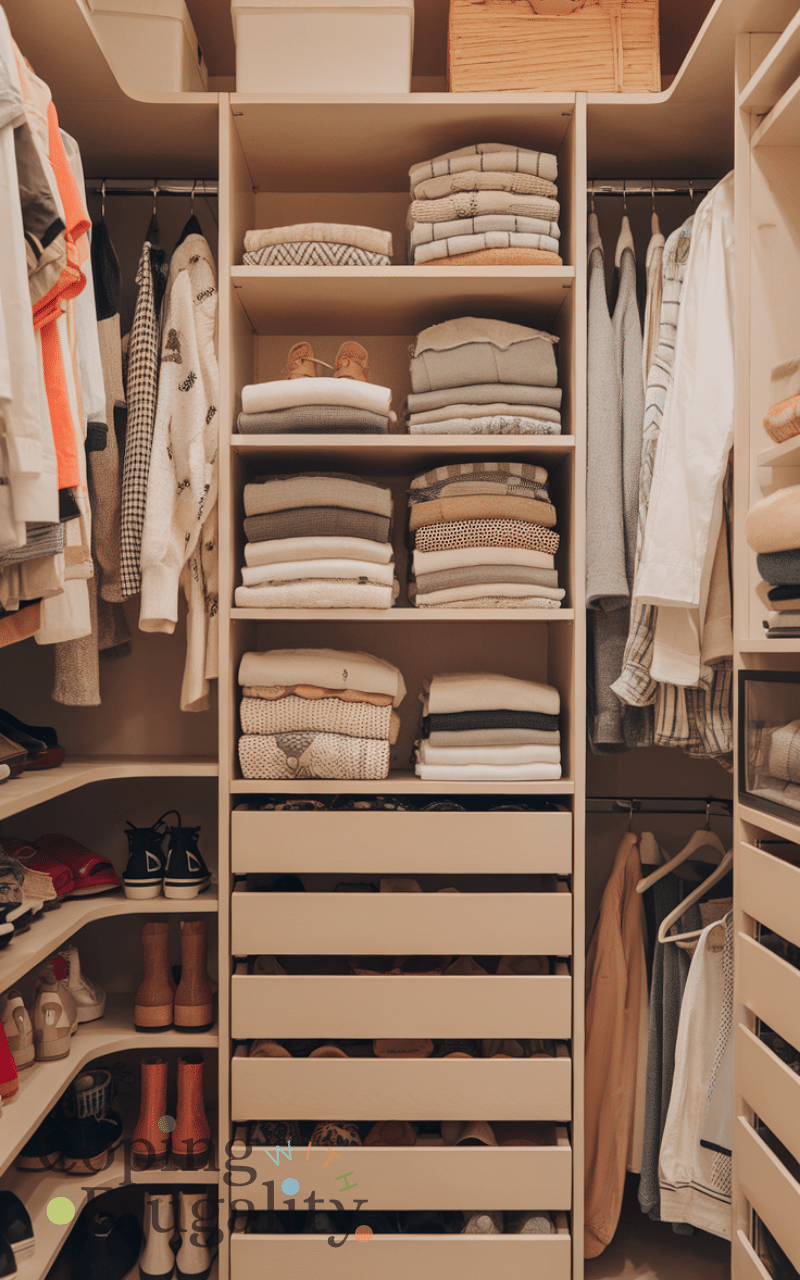 When you organize shelves drawers or closets try stacking things vertically because it saves space and makes it easier to find what you need so this organization idea on a budget can instantly make your home look tidy and well arranged.