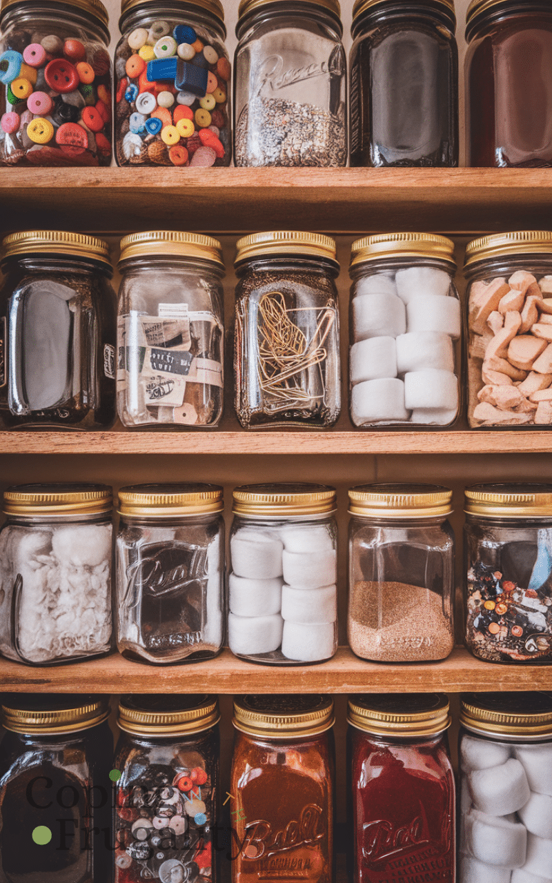 Instead of buying expensive storage containers you can use empty jars from pasta sauce or jam to store small items like buttons paper clips spices or cotton pads because this is one of the best organization and cleaning ideas on a budget and it helps you keep your drawers neat and clutter free while giving your home a rustic charm.