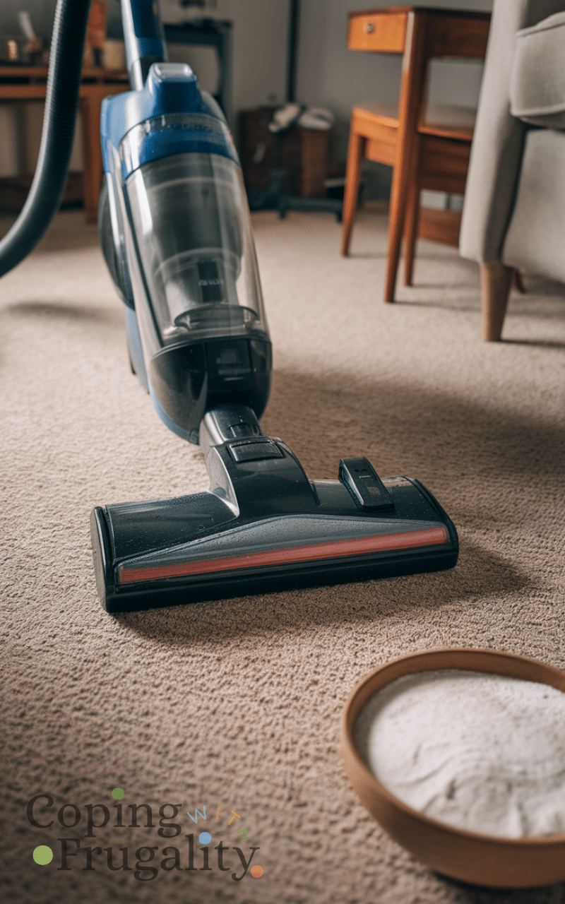 Sprinkle some baking soda over your carpet leave it for ten minutes then vacuum because it removes odors and leaves the room smelling clean so this cleaning idea on a budget works wonders with ingredients you already have at home.