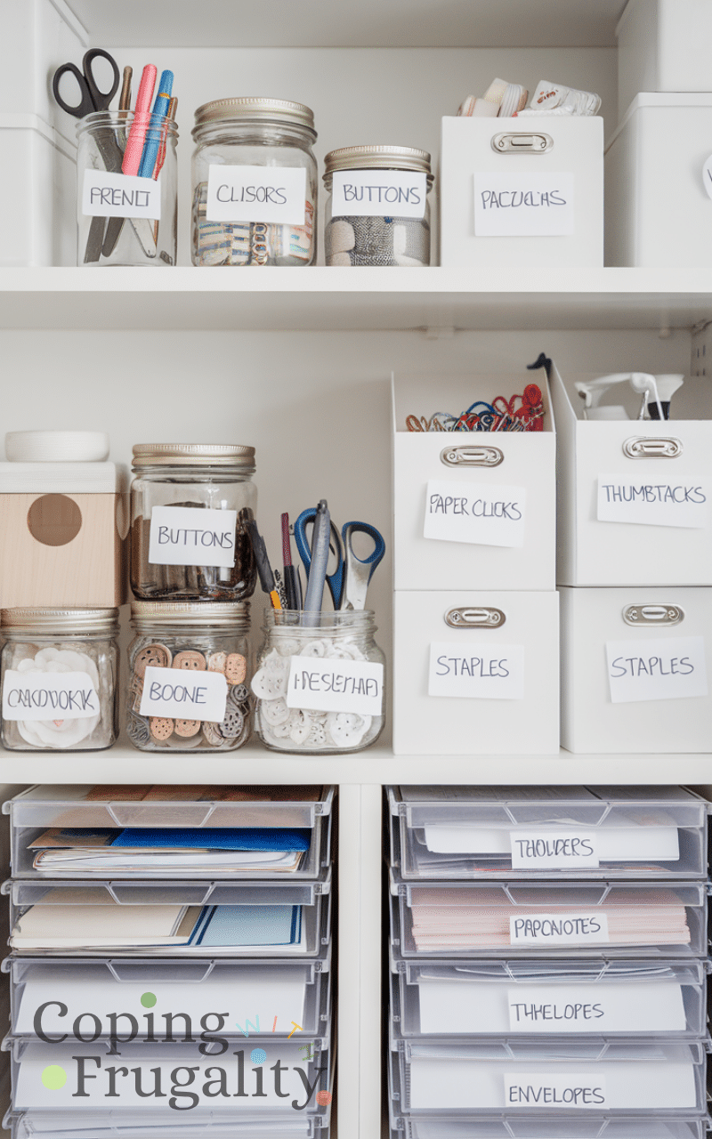 Adding simple handwritten or printed labels to jars boxes and drawers helps you know exactly where everything belongs so this organization and cleaning idea on a budget saves you time and keeps your space looking neat and smart.