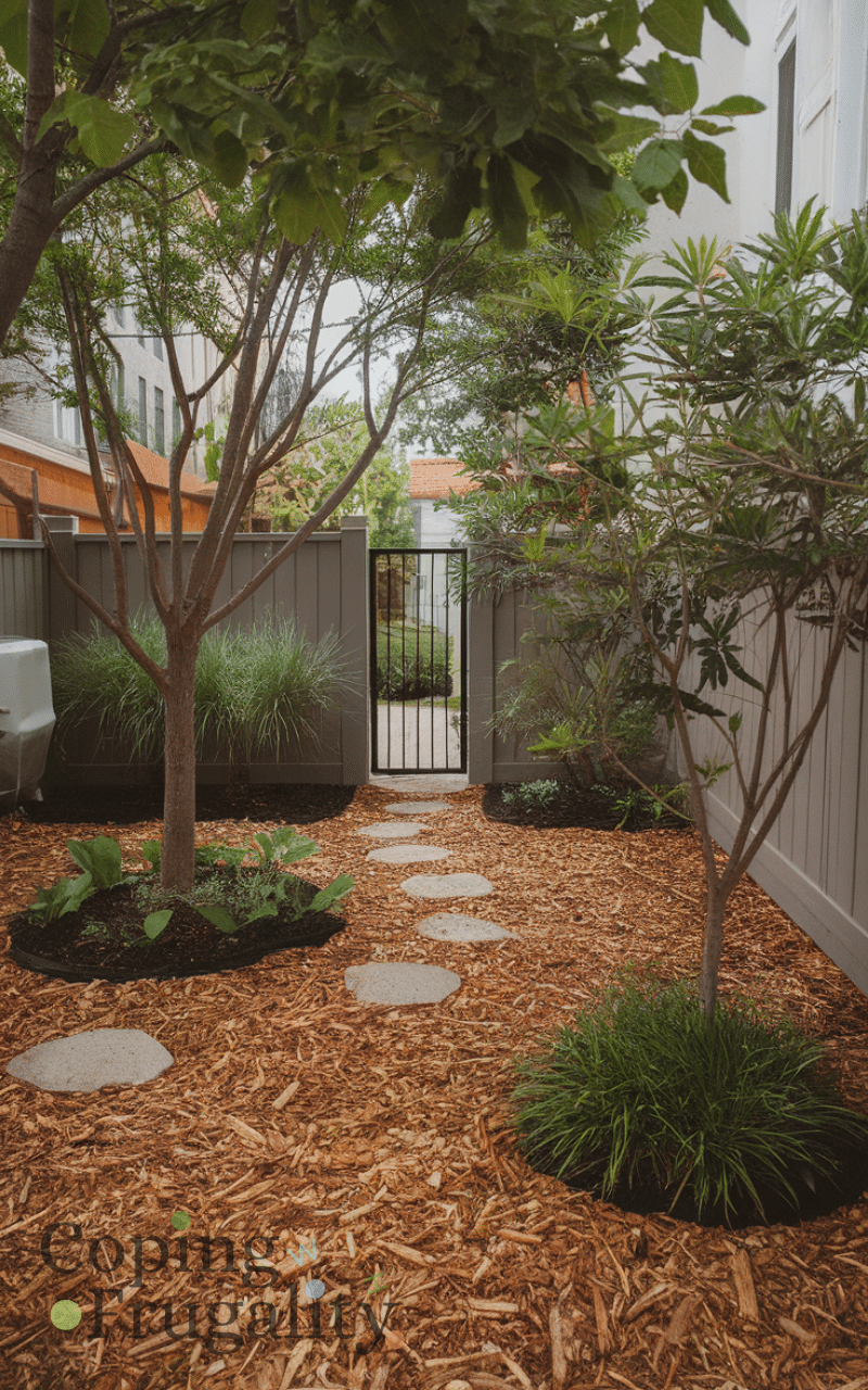 Using mulch is a practical small backyard landscaping idea on a budget for every home since it protects your plants and enhances soil health meanwhile it helps prevent weeds from growing and keeps the soil moist moreover you can use wood chips or shredded leaves for a natural look additionally spreading mulch around trees and garden beds will create a uniform and neat appearance furthermore this method adds texture and depth to your backyard and finally it is a cost-effective solution that makes your outdoor space look well-maintained and lush.