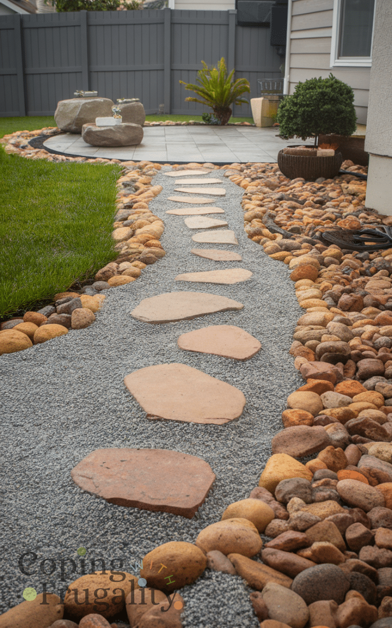 Using decorative stones and gravel is a clever small backyard landscaping idea on a budget for every home because it helps define spaces and adds texture meanwhile it can be used for pathways patios or around plants additionally choosing different colors and sizes of stones will create a unique and eye-catching design furthermore gravel and stones are low-maintenance and durable making them practical and functional and finally this method gives your backyard a polished and stylish look without expensive materials.