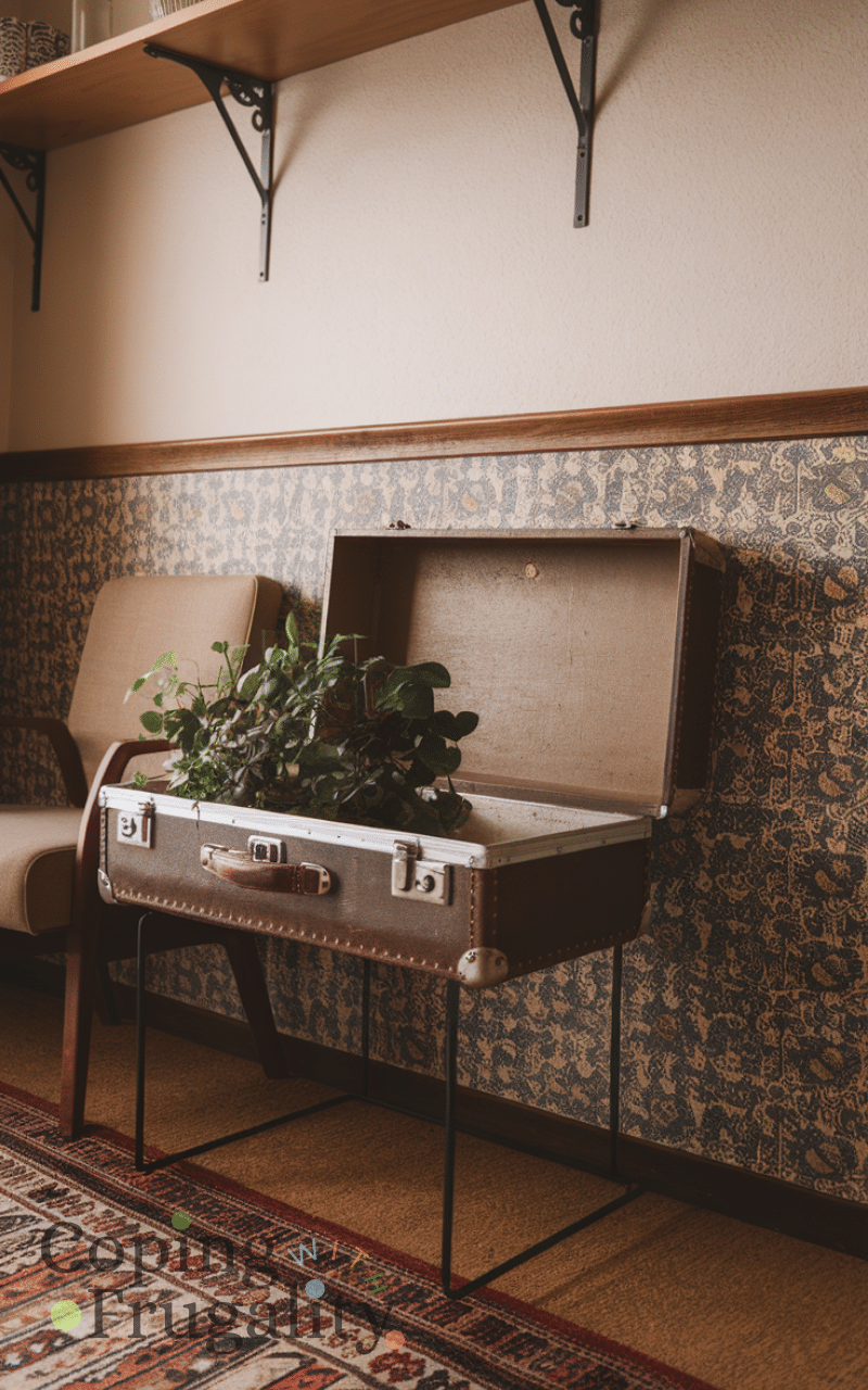 Upcycle old suitcases is the ultimate thrift store makeover idea on a budget for home decor since you can turn them into side tables storage or shelves and this idea combines functionality with vintage charm and using old suitcases creatively adds personality and unique style to your home and it also helps you organize your space while enhancing your home decor beautifully and affordably.
