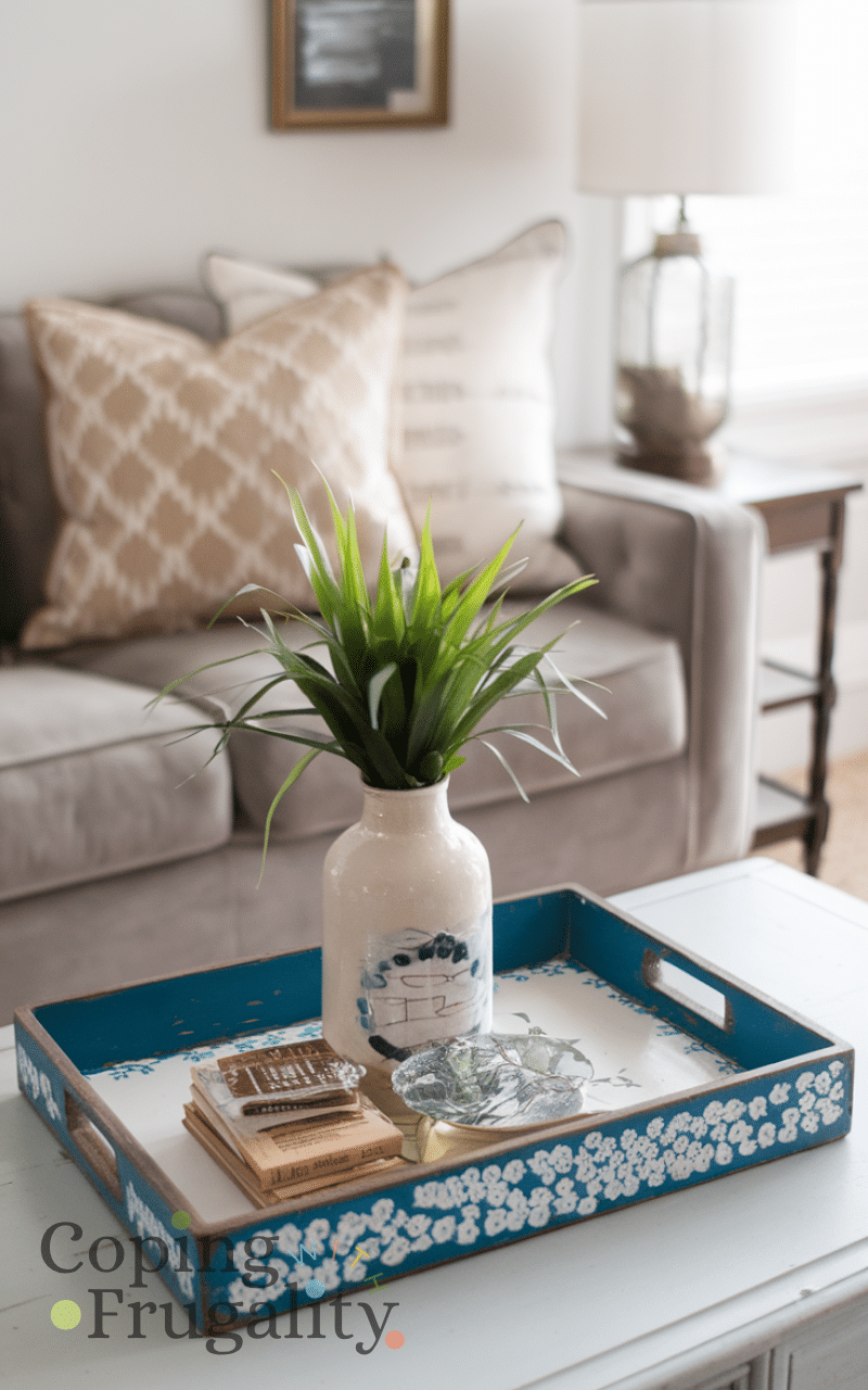 Create a vintage tray is a fun thrift store makeover idea on a budget for home decor since you can find old trays and give them a makeover with paint or decoupage and you can use the tray for serving drinks or as a decorative piece on a coffee table or dresser and this way you turn something ordinary into a stylish focal point that elevates your home decor easily and affordably.